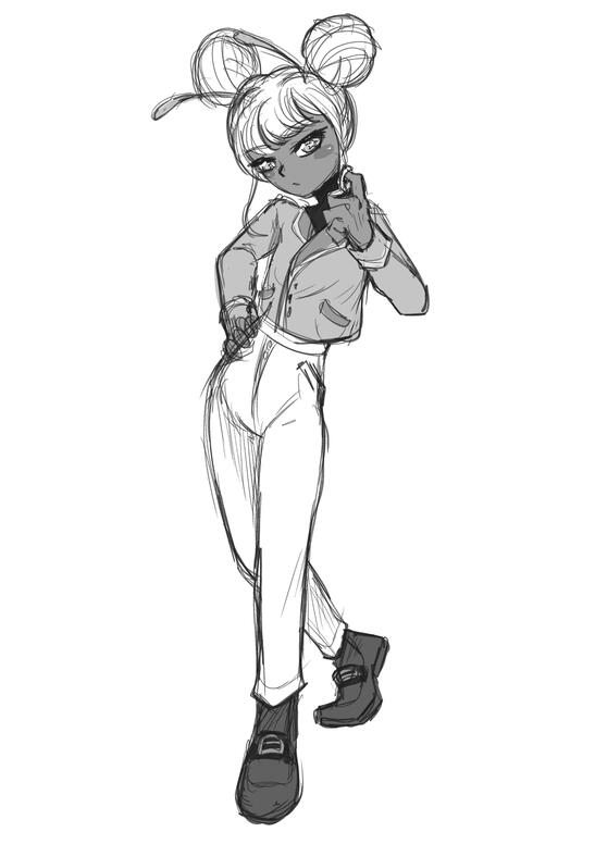 These are some examples of sketch reference for early characters design for my manga. I usually do variations on many details in a character during the testing process. Here is a example: