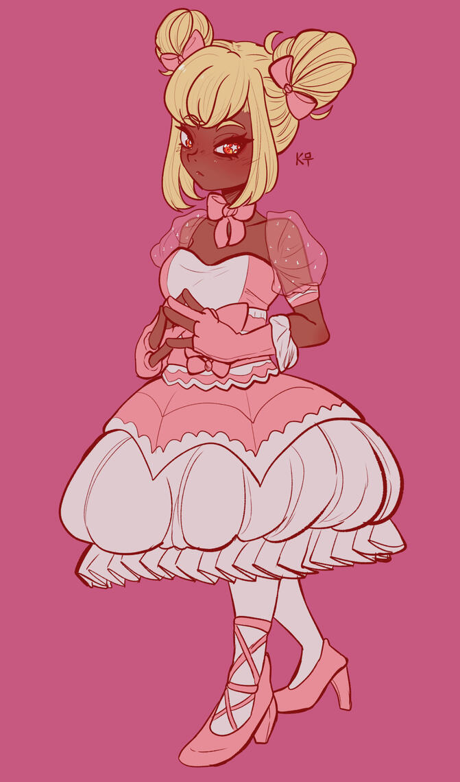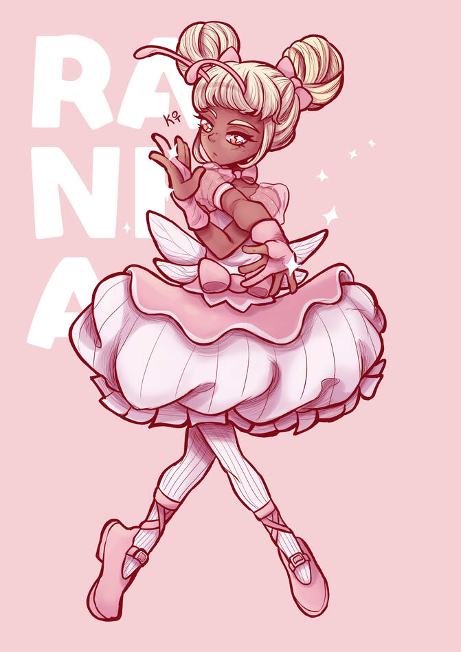While drawing this character i had in mind three important concepts: She's a princess, she dance ballet and she´s a mid butterfly girl. Despite the variations, i always wanted to design her with a ballet-inspired princess dress, with a fluffy skirt and pink heels. The result is very satisfactory for me.