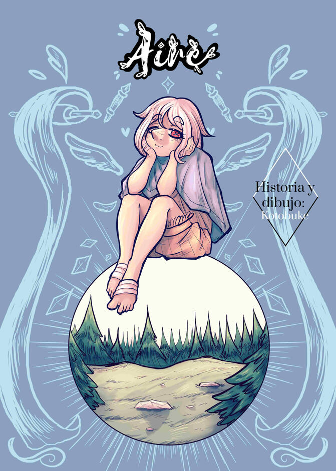 Aire is a fantasy manga about a girl named Aire, who awake on a strange forest surrounded by danger. Grom, the fire knight, rescue her for beeing devoured and adopt her as a daughter, willing to teach her about all the amazing magic on this mysterous world. You can read it here (Spanish only):